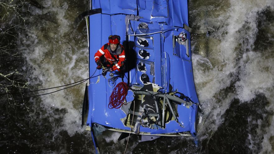 Según los equipos de rescate, que publicaron en Twitter una foto del autobús sumergido en el fondo de un barranco en un río tumultuoso entre troncos de los árboles, el incidente se produjo en un lugar de difícil acceso, lo que está complicando las tareas de salvamento.