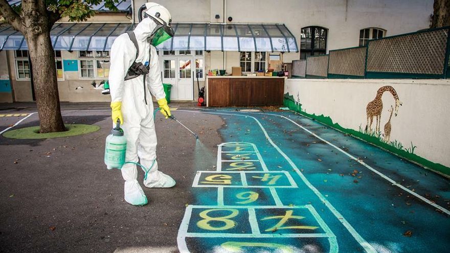 "La cubierta tiene un grosor de entre 4 y 5 centímetros a lo largo de 1850 metros cuadrados. La contaminación es superficial, por lo que el mejor método era retirarlo para instalar una nueva y que los niños puedan comenzar el curso dentro de las medidas sanitarias", explicó Mickael Prestavoine, director de la operación.
