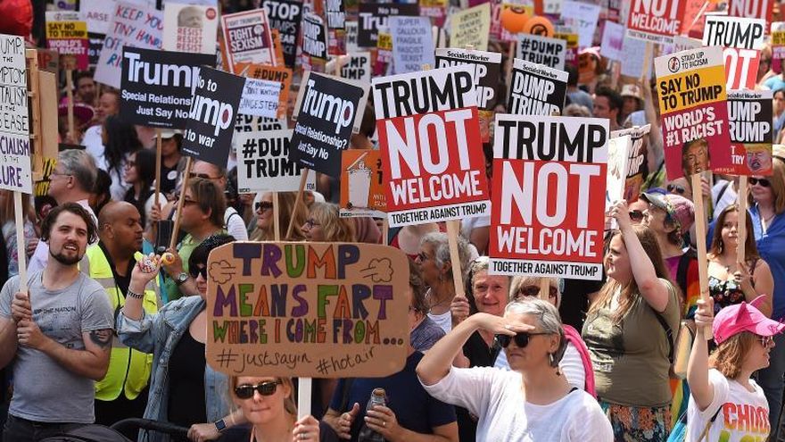 Los asistentes a la movilización -convocada a nivel nacional por la coalición Together Against Trump (Juntos contra Trump), promovida por el periodista Owen Jones- se concentraron después del mediodía local en el centro de la capital británica y marcharán hasta la plaza de Trafalgar, donde habrá música, consignas y lectura de manifiestos.