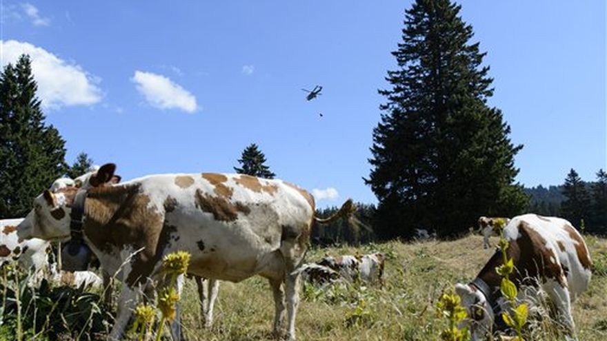 Las vacas que sufren los rigores del sofocante verano helvético reciben ayuda de un aliado inesperado: el ejército suizo.
