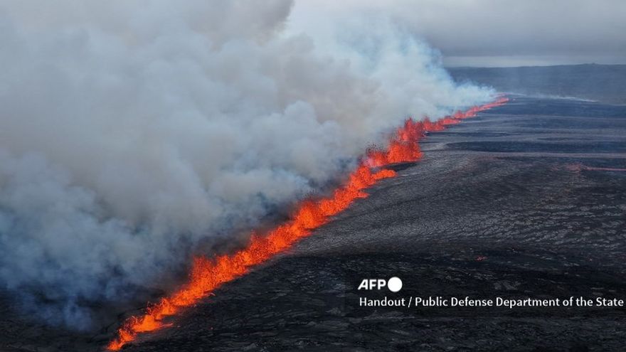 Imágenes de video en directo muestran lava escapando de una fisura en el suelo. La erupción comenzó poco antes de las 04H00 GMT, informó la Oficina Meteorológica de Islandia.
