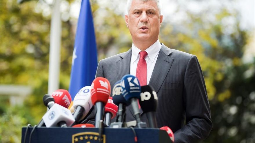 "Para defender la integridad del cargo de presidente y de Kosovo, así como la dignidad de los ciudadanos, dimito de mi puesto de presidente de la República de Kosovo", aseguró Thaçi, en rueda de prensa en la capital Pristina.