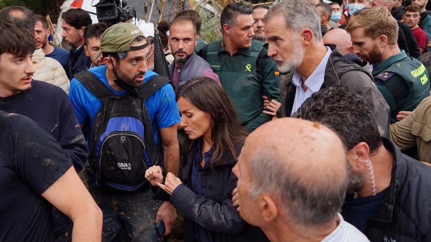 Esa visita estuvo marcada por abucheos y lanzamientos de barro, lo que obligó a Sánchez y luego a Mazón a abandonar el lugar. La pareja real permaneció allí, con la ropa manchada de barro, pero acortó su visita.