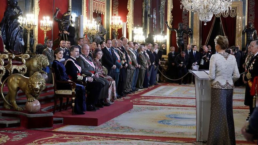 La celebración de la Pascua Militar en el Palacio Real de Madrid sirvió para felicitar y homenajear al rey emérito, presente en el acto, al igual que el presidente del Gobierno español, Mariano Rajoy, y los altos mandos militares de los tres ejércitos.