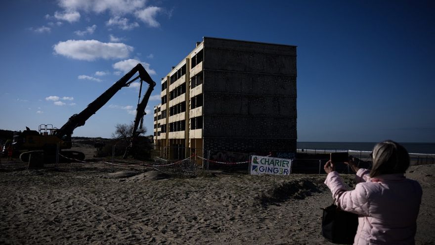Soulac-sur-Mer, Francia/Una enorme excavadora mecánica empezó este viernes a demoler un edificio situado a orillas del Océano Atlántico en el suroeste de Francia, convertido en símbolo del retroceso del litoral y de la erosión costera vinculados al cambio climático.