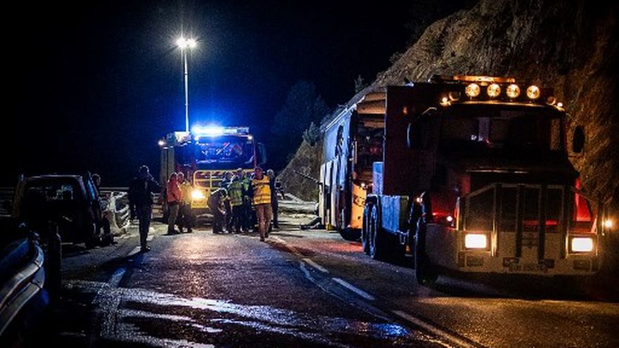 Unos 200 bomberos y gendarmes franceses y agentes españoles de la Guardia Civil intervinieron para socorrer a las víctimas en esa carretera de montaña, de difícil acceso, a más de 1,600 metros de altura en los Pirineos.