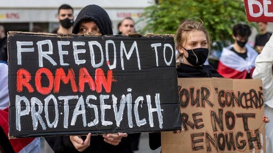 En un comunicado, los jefes de las diplomacias de las siete mayores economías y de la Unión Europea denunciaron la "puesta en peligro de la seguridad de los pasajeros y de la tripulación" del vuelo entre Grecia y Lituania que el domingo fue desviado a Minsk con una falsa alerta de bomba para detener a Protasévich.