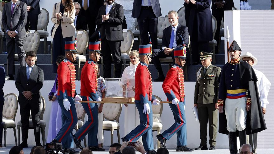 "La espada de Bolívar representa la soberanía de Latinoamérica. El rey Felipe VI ha sido el único jefe de Estado que ha permanecido sentado a su paso en la toma de posesión del nuevo presidente de Colombia. Una falta de respeto grave", tuiteó la noche del lunes Podemos, una formación abiertamente republicana y crítica de la monarquía.