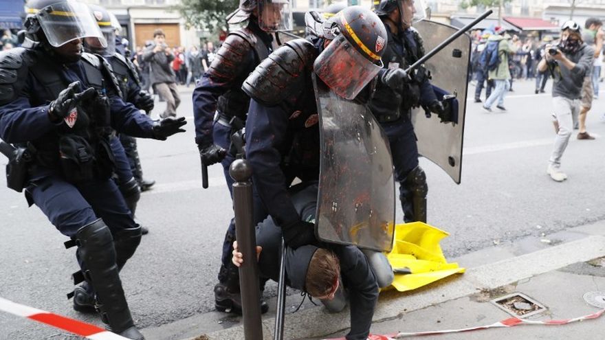 Un manifestante y cinco policías resultaron heridos, uno de los cuales con quemaduras en una pierna, durante una manifestación este jueves en París contra la controvertida reforma laboral adoptada en el verano (boreal), según una fuente policial.