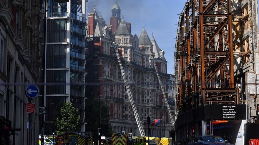 Casi 100 bomberos combatían este miércoles por la tarde un incendio en el Hotel Mandarin Oriental del barrio londinense de Knightsbridge, cerca de los lujosos grandes almacenes Harrods.