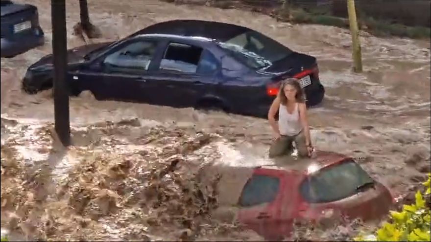 En redes sociales, las imágenes que se han compartido son impactantes por la fuerza del agua. En algunos videos se puede ver como hay personas trepadas en el capó de los autos intentando que la corriente no se los lleve.