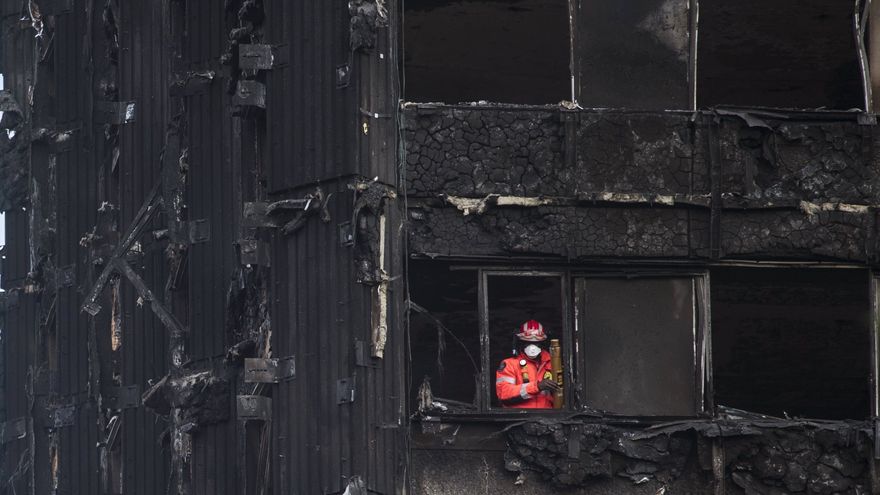 Un bombero inspecciona los restos de la Torre Grenfell / EFE