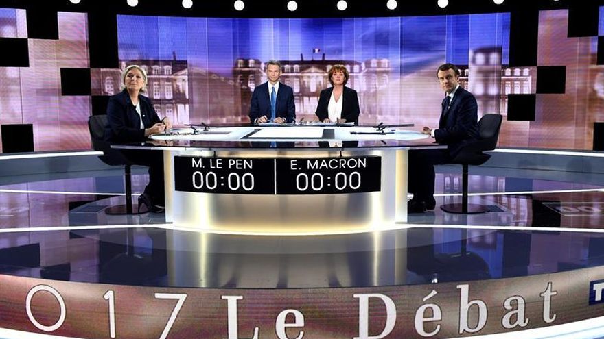 A dos días de la segunda y decisiva vuelta de los comicios presidenciales que enfrentará a Le Pen con Emmanuel Macron, rumores e informaciones falsas han circulado por internet, como la supuesta cuenta bancaria que tendría en las Bahamas el candidato socioliberal, quien se ha querellado por la difusión de esa noticia.