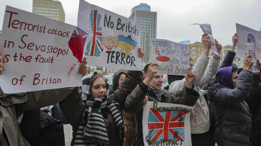Manifestantes británicos en contra de la guerra que vive Ucrania