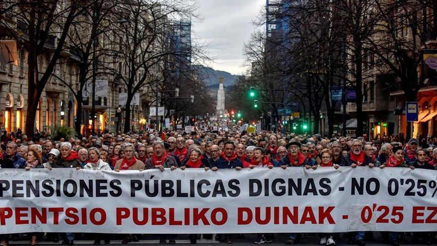 La Coordinadora Estatal por la Defensa del Sistema Público de Pensiones (COESPE) y otros grupos convocaron a manifestar en un centenar de municipalidades para reclamar "pensiones dignas".