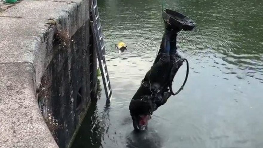 Su estatua fue recuperada del río por las autoridades locales.