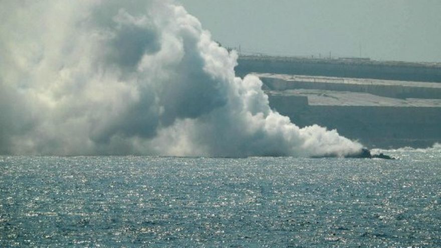 El contacto de la lava con el mar no ha producido de momento los efectos que más se temían, como explosiones u oleaje de agua hirviendo, aunque sí desprendimiento de gases potencialmente tóxicos.