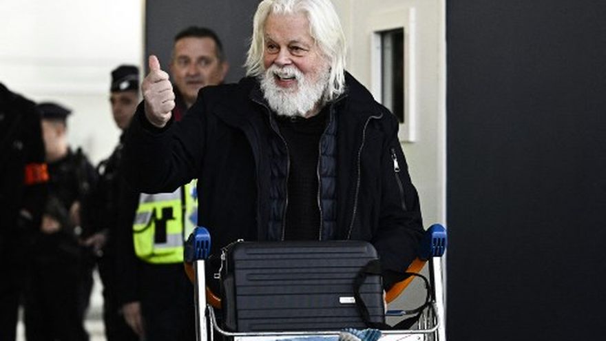 El defensor de ballenas aterrizó en el aeropuerto de París Charles de Gaulle antes de las 15H00 (14H00 GMT), según una fuente aeroportuaria, y fue recibido con aplausos de un pequeño grupo de simpatizantes.