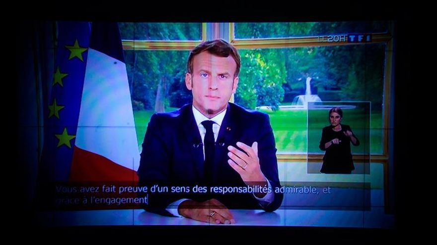 En un discurso a la nación, Macron dijo que mañana, lunes, Francia "pasa la página del primer acto" de la lucha contra el coronavirus, y que para ello hay que acelerar el retorno a la normalidad y reactivar la economía.
