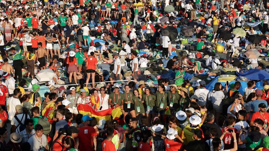 Con sus coloridas mochilas y sus sacos de dormir preparados, una marea de jóvenes católicos de todo el mundo fueron juntándose bajo un fuerte sol en una inmensa explanada preparada para la ocasión junto al Tajo, donde pasarán la noche hasta la misa final del domingo.