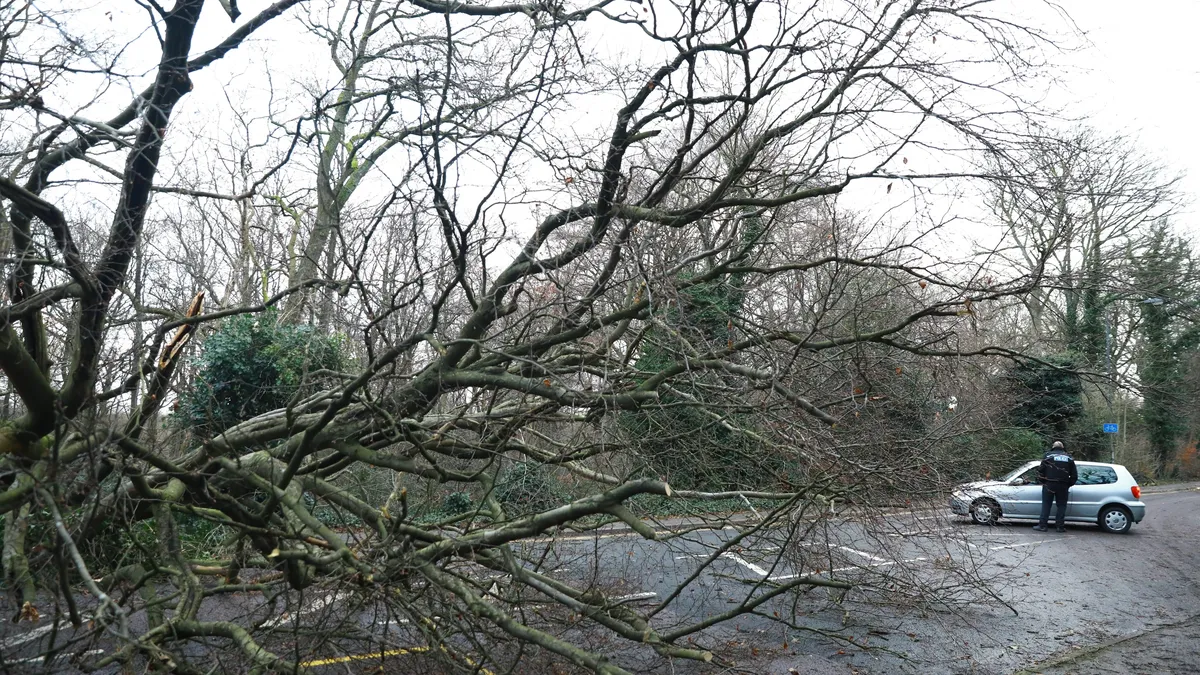 En Gales, un hombre resultó herido al caer un árbol sobre su automóvil en el Valle de Glamorgan, Gales.