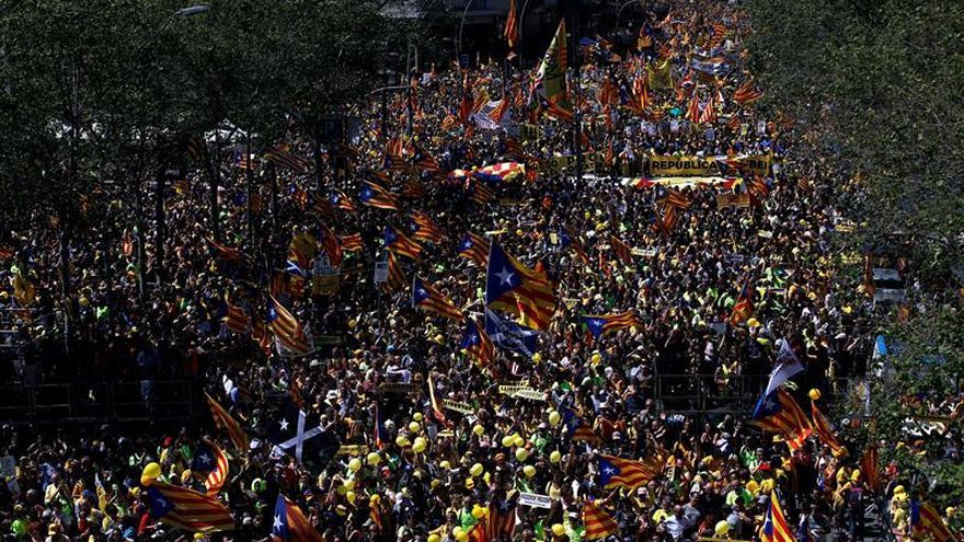Unas 315.000 personas, según la Policía local de Barcelona, pidieron hoy la libertad de los líderes encarcelados preventivamente por el proceso independentista iniciado en Cataluña en 2017, y reclamaron "espacios para el diálogo y la negociación política" para resolver la crisis catalana.