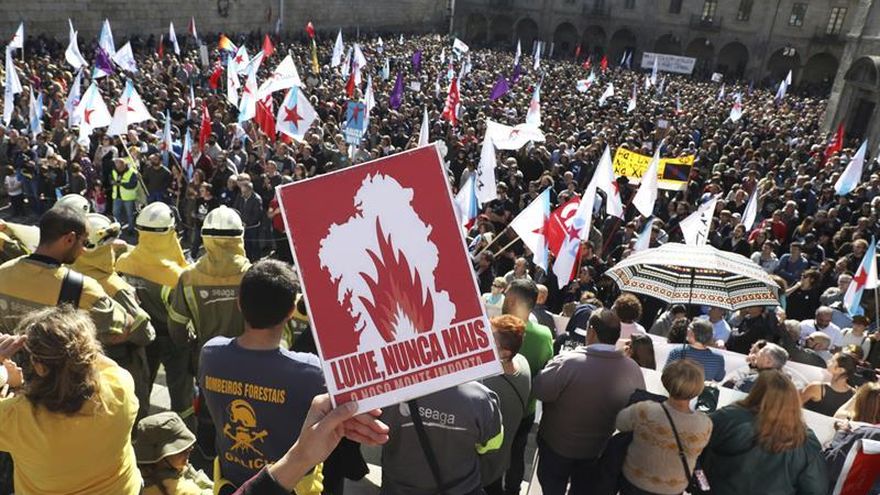 Miles de personas se manifestaron este domingo en la capital de Galicia para protestar contra la ola de incendios que arrasaron esta región del noroeste de España hace una semana, pedir responsabilidades al Gobierno regional y la dimisión de su presidente, Alberto Núñez Feijóo.