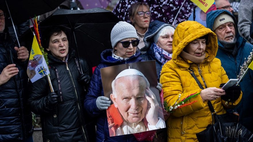 "Igual que todo hombre honrado defiende a sus hijos, a su padre y a su madre, todo polaco defiende a Juan Pablo II", rezaba una de las pancartas de la protesta.
