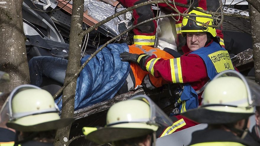 El accidente se produjo en una vía de sentido único cerca de la localidad bávara de Bad Aibling a las 05.45 GMT y al lugar, de difícil acceso, se desplazaron numerosos equipos de rescate con ambulancias y una decena de helicópteros para atender a los heridos y trasladar a los más graves a los hospitales.