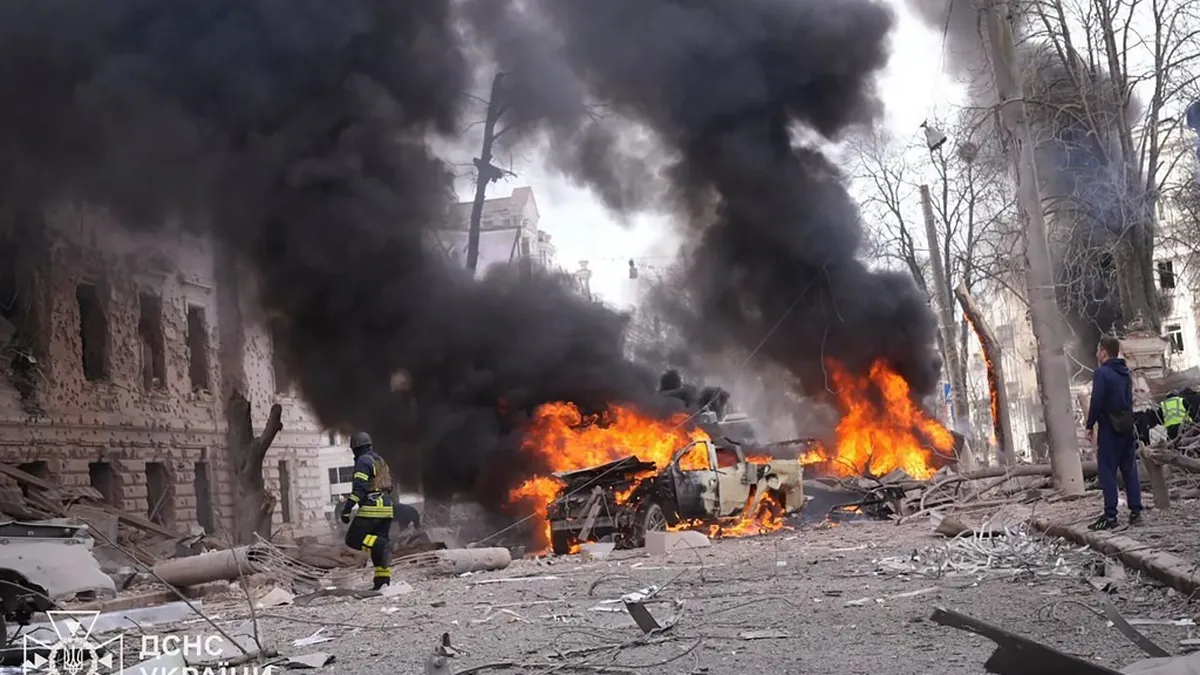 Sumi/Un bombardeo ruso con misiles mató a más de 30 personas, entre ellos dos niños, en el centro de Sumi, una ciudad del nordeste de Ucrania, en plena afluencia por el Domingo de Ramos.