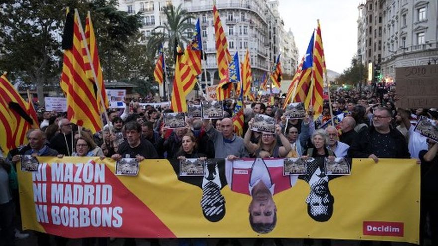 Los manifestantes se concentraron en la plaza del Ayuntamiento de Valencia para recorrer el kilómetro que la separa del Palacio de la Generalitat, sede del Gobierno regional valenciano, exigiendo sobre todo la dimisión del presidente valenciano Carlos Mazón, pero sin ahorrar críticas también al Ejecutivo central del socialista Pedro Sánchez.