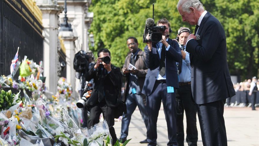 Carlos voló a Londres desde Escocia, tras pasar la noche en el castillo de Balmoral, donde murió su madre Isabel II. Llegó en coche oficial al palacio, donde estrechó la mano de muchos presentes entre gritos de "¡Dios salve al Rey!". Allí grabará por la tarde su primer mensaje televisivo como monarca.