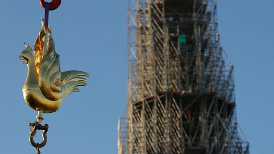 El anterior gallo quedó demasiado dañado durante el gran incendio del 15 de abril de 2019, que destruyó parcialmente la monumental catedral.