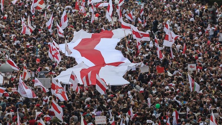La principal manifestación de la oposición se celebró en Minsk, donde salieron a las calles cerca de 150,000 personas, según los cálculos de medios independientes bielorrusos.