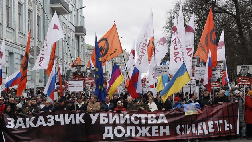 La oposición rusa exigió hoy la dimisión del presidente ruso, Vladímir Putin, en una multitudinaria marcha en memoria de Boris Nemtsov, el político liberal asesinado hace cinco años frente al Kremlin, y en protesta contra la reforma constitucional.