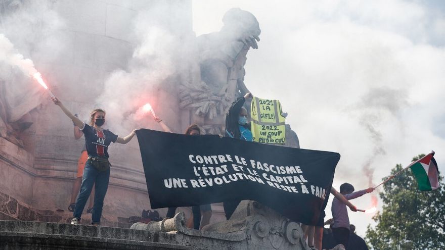 Los manifestantes también cargaron contra el gobierno de centro derecha de Macron y contra la derecha, a los que acusan de seguir la estela de la extrema derecha, y contra sus recientes "leyes liberticidas".