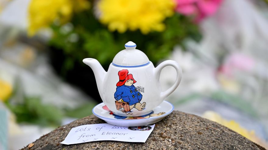 Paddington no está solo entre tanta flor. Peluches o dibujos de corgis, los perros preferidos por la reina, lo acompañan. "La echarán de menos", escribe un niño dentro de un corazón con pegatinas de corgis.