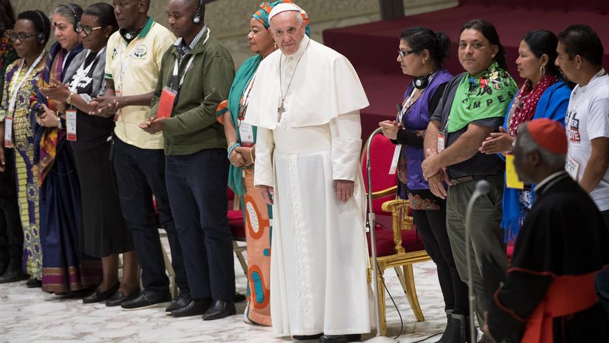 "Ese es el desarrollo que necesitamos: humano, integral y respetuoso de la Creación", reivindicó Francisco, para después secundar el lema de estos encuentros, basado en lo que se conoce como las "3T": "tierra, techo y trabajo" para todos.