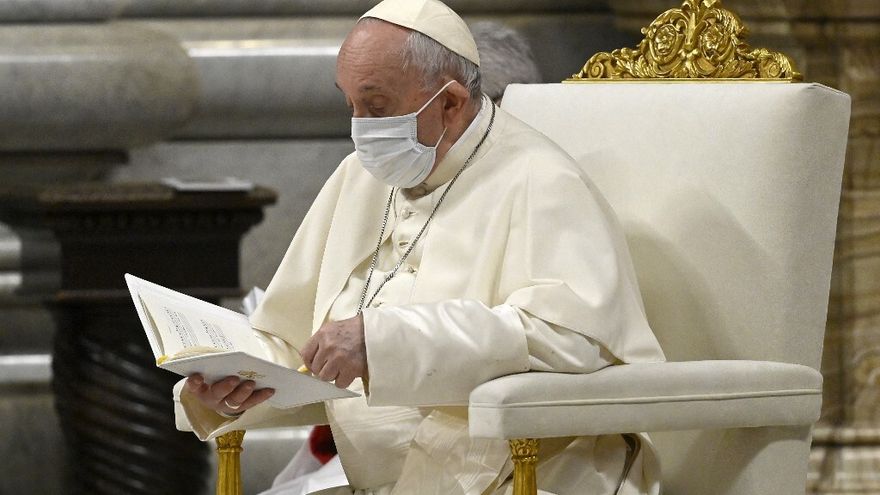 Giovanni Battista Re, decano del Colegio Cardenalicio, dirigió el servicio mientras que el pontífice, de 85 años, con mascarilla, pasó la mayor parte del mismo sentado en los márgenes de la sala.