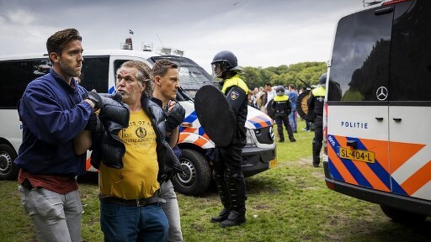 La policía holandesa dispersó con cañones de agua y carabineros a manifestantes molestos por las políticas anticoronavirus del gobierno, y arrestó a decenas de personas.