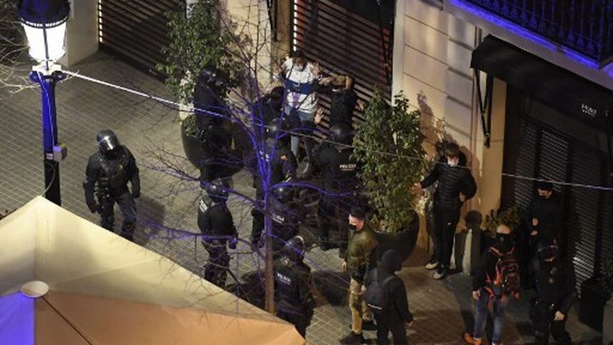 Estas personas fueron detenidas tras la noche del sábado de fuertes disturbios y vandalismo en Barcelona, Cataluña (noreste), que siguieron a una nueva manifestación para reclamar la excarcelación del controvertido rapero Pablo Hasél.