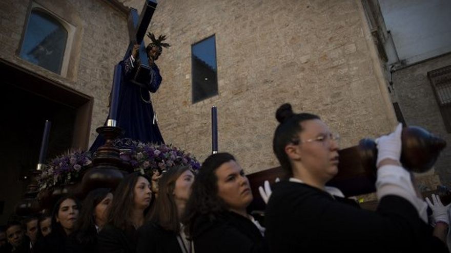 Bajo el sol de la tarde, miles de jienenses se agolparon el lunes por la tarde en las calles de esta ciudad en el interior de Andalucía para ver pasar a "El Abuelo", como se conoce allí esta imagen de un Cristo portando una cruz.