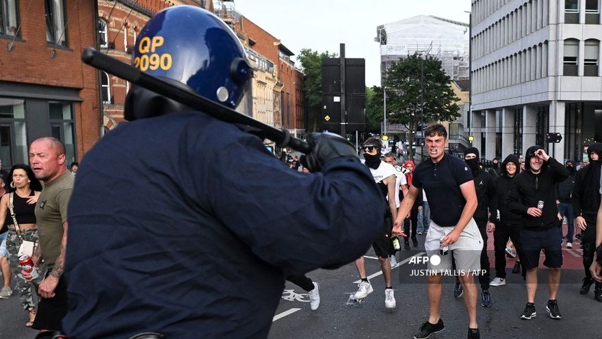 En la ciudad de Middlesbrough (noreste), cientos de manifestantes se enfrentaron a policías antidisturbios, algunos arrojando ladrillos, latas y ollas contra los agentes. Más de 90 personas fueron arrestadas el sábado tras refriegas en manifestaciones de extrema derecha en Liverpool, Manchester, Bristol, Blackpool y Hull, así como en Belfast (Irlanda del Norte).