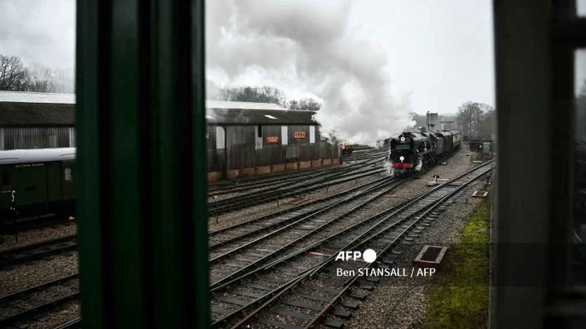 Un ferrocarril en Reino Unido es captado a través de una ventana / AFP