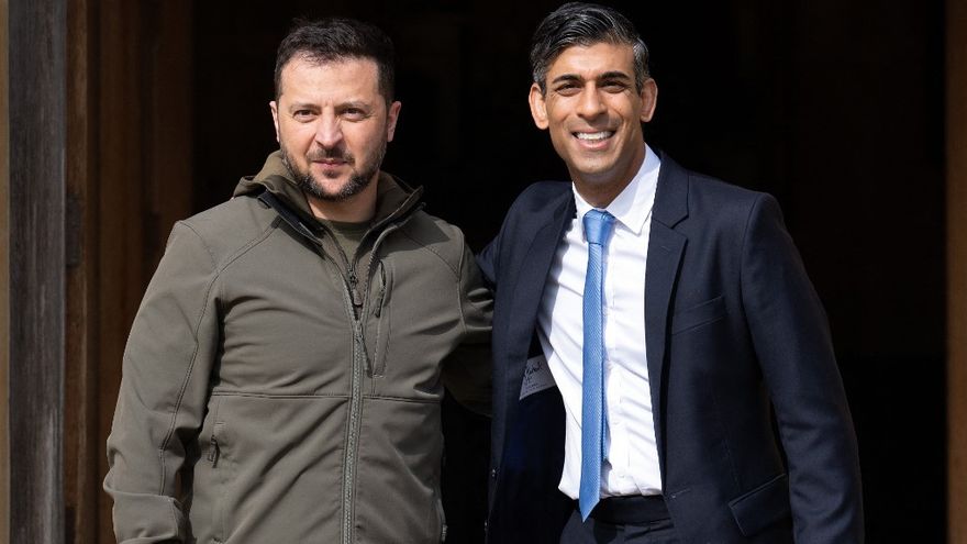 El presidente ucraniano, Volodimir Zelenski, se reunió el lunes con el primer ministro británico, Rishi Sunak, que prometió entregar a Ucrania "cientos" de misiles antiaéreos y drones de ataque de largo alcance para que pueda defenderse de la invasión rusa.