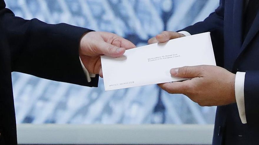 La primera ministra británica, Theresa May, notificó hoy a la Unión Europea (UE) la salida del Reino Unido del club comunitario mediante una carta entregada al presidente del Consejo Europeo, Donald Tusk, que la recibió con "tristeza" y con la determinación de que será una marcha "ordenada".