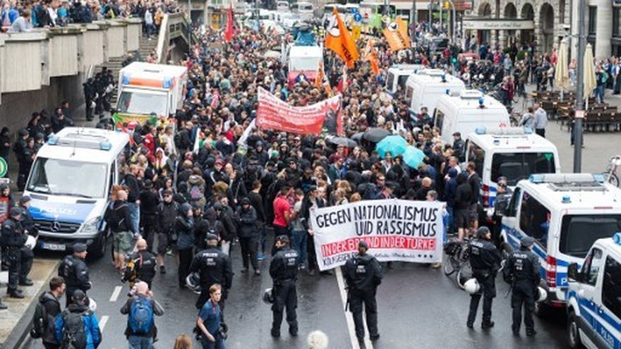 En Colonia, habían sido desplegados 2.700 policías y ocho cañones de agua para evitar incidentes, ya que paralelamente tenían lugar varias contra-manifestaciones en distintos puntos de la ciudad.