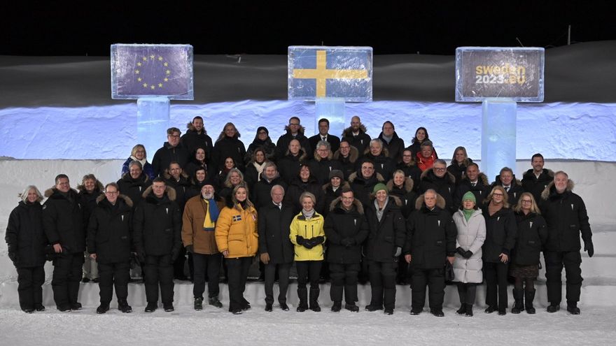 El rey Carlos XVI Gustavo de Suecia, la presidenta de la Comisión Europea, Ursula von der Leyen, y el primer ministro sueco, Ulf Kristersson, cortaron la cinta inaugural del puerto espacial de Esrange, anunciado como "el primer complejo de lanzamiento de satélites de Europa continental".