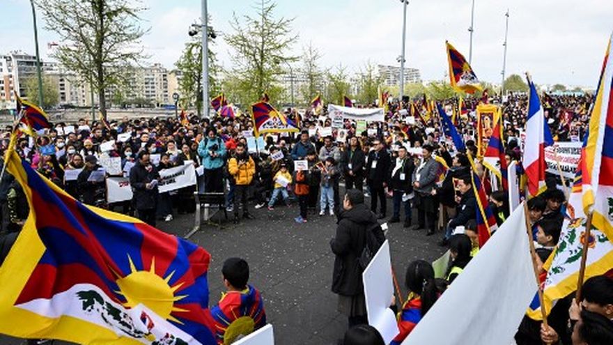 La concentración se llevó a cabo frente a la sede de France Télévisions, para denunciar "a los medios y las cadenas de televisión que no hicieron su trabajo de periodistas y reprodujeron la propaganda china", según expresó un portavoz de la comunidad tibetana.
