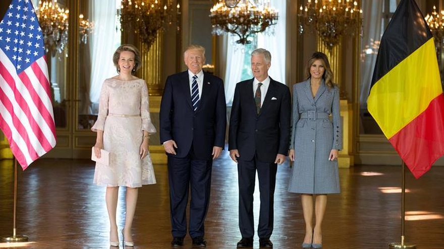 El presidente de Estados Unidos, Donald Trump, llegó hoy al palacio real belga junto a la primera dama, Melania Trump, para mantener un encuentro con los monarcas, Felipe y Matilde, y, a continuación, con el primer ministro del país, Charles Michel.